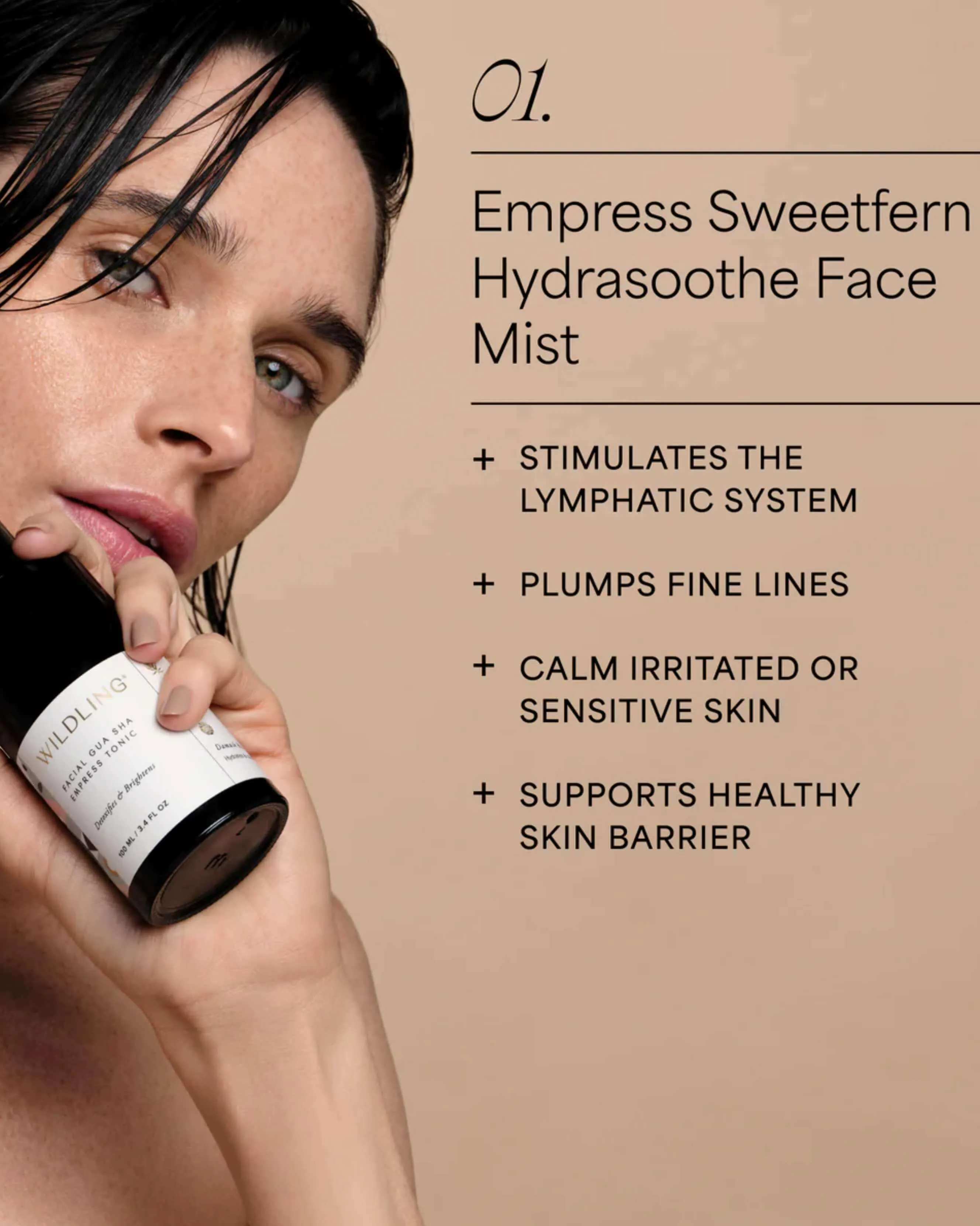 Why We Love It: The Empress Collection is a complete facial gua sha system, inspired by Traditional Chinese Medicine, that includes the Empress Sweetfern Hydrasoothe Face Mist, Empress Balm of Gilead Repair Oil, and our patented Empress Stone. Each product is powerful on its own, but together they work synergistically to create a perfect canvas for the skin-changing benefits of facial gua sha. Whole-plant botanicals in the Empress Sweetfern Hydrasoothe Face Mist and Empress Balm of Gilead Barrier Repair Oil deliver hydrating, smoothing, and brightening effects while the Empress Stone sculpts facial contours by relaxing expression patterns, moving lymph, and encouraging myofascial release.