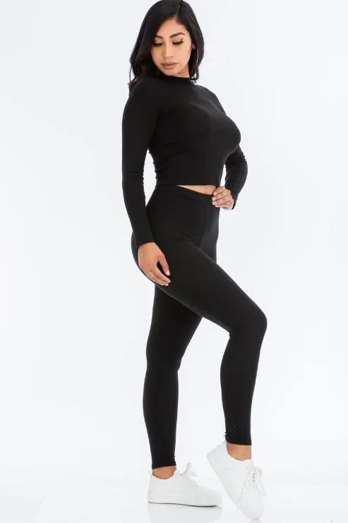- Long sleeve ribbed top & leggings set featuring a mock neck top from Capella Apparel